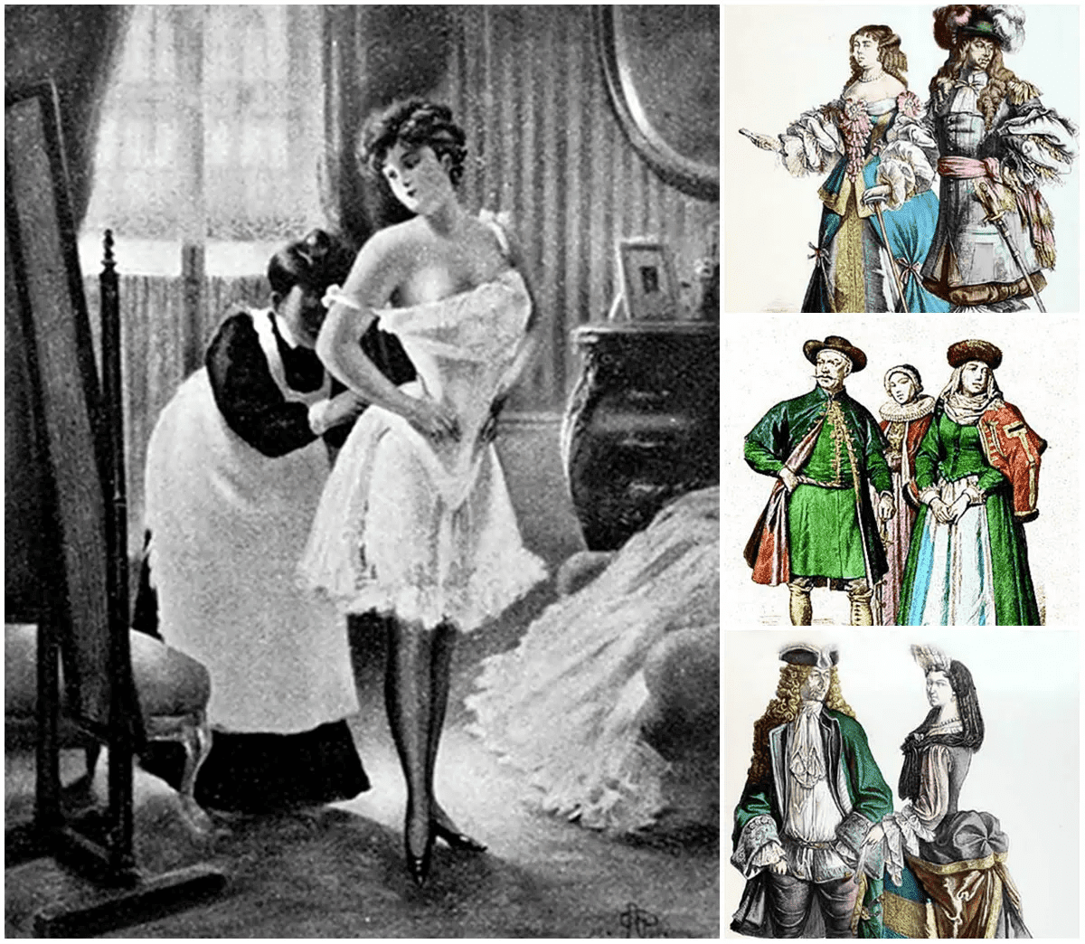 Samodzielne założenie gorsetu było prawie niemożliwe. Zamożne damy miały służące, które maksymalnie je dopinały i pomagały w zakładaniu innych, równie skomplikowanych elementów wizerunku.