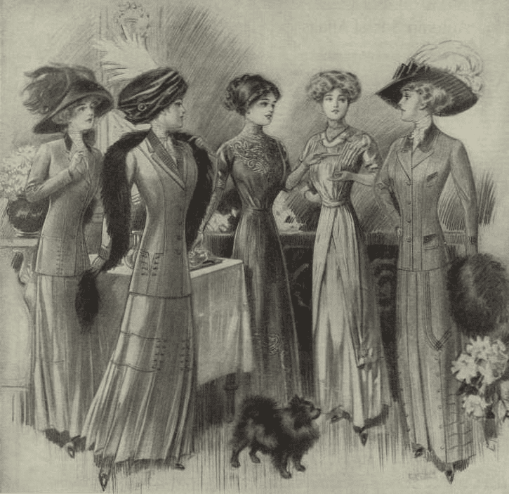 Na przykład ubrania w XX wieku stały się znacznie bardziej odsłaniające niż wcześniej. Modne stały się spódnice do kolan lub poniżej kolan, żakiety i eleganckie kapelusze.